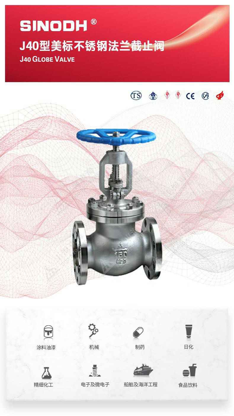 J40型美标不锈钢截止阀,为开云手机官方站登录入口-开云(中国)自主研发生产。本产品的设计制造符合美国国家标准ANSIB16.34,美国石油学会标准AP1 6D和AP I 600要求,产品结构紧凑密、刚性好、封性性能优秀是一种最常见的启闭阀,利用闸板的上下工作来接通(全开)和截断(全关)管道中的流体介质。