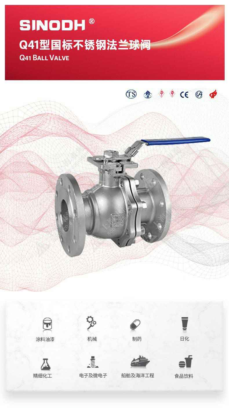 Q41型国标不锈钢法兰球阀,为开云手机官方站登录入口-开云(中国)自主研发生产。本产品设计制造标准符合GB/T12237、GB/T 1 2224标准该产品的球体在介质压力作用下,球体能产生-定的位移并紧压在出口端的密封面上,保证出口端密封。适用于水、溶剂、酸和天然气等-般工业介质,也适用于工况恶劣的介质,如氧气、过氧化氢、甲烷和乙烯等介质。